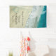 La jolie bannière de mariage sur une plage tropicale aura fière allure sur la voiture des jeunes mariés ou comme un panneau pour accueillir et diriger vos invités vers votre cérémonie de mariage et réception de destination insulaire. Cette bannière de mariage personnalisée sur le thème des tropiques présente une photographie de la nature d'un océan bleu turquoise aqua et d'une plage de sable avec un palmier blanc et des tourbillons de teal ornant le coin et les mots Heureux pour toujours.