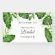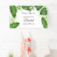 Thème tropical pour la douche de la mariée avec des feuilles de palmier illustrées à l'aquarelle, des feuilles de monstera et d'autres éléments botaniques de la jungle sur une banderole de bienvenue personnalisée. Conçu et illustré avec amour par Kristine Lee Designs.