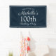 Bannière de la fête du 100e anniversaire bleu et blanc de la marine pour une fête de femme. Le texte est une police de script de calligraphie élégante. Contactez-nous pour obtenir de l'aide sur la personnalisation ou pour demander des produits correspondants.