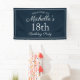 Bannière moderne marine bleu et blanc 18ème anniversaire pour une fête d'anniversaire de femme. Le texte est une police de script de calligraphie élégante. Contactez-nous pour obtenir de l'aide sur la personnalisation ou pour demander des produits correspondants.