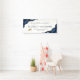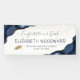 Célébrez son jalon en style avec cette bannière tendance et élégante de graduation, avec des sections d'aquarelle bleu marine découpées avec de la parties scintillant en faux or dans les coins supérieur gauche et inférieur droit. Les mots "Félicitations à notre Grad" (ou le texte de votre choix) apparaissent dans un élégant script d'écriture gris-fusain au-dessus du nom de votre diplômé en bleu marine sans serif police. Ci-dessous, ajoutez le nom de son école et son année de graduation en charcoal sans serif. Les confettis en or Faux flottent sur le bord supérieur, et un casquette en parties scintillant d'or faux mortier apparaît en bas à gauche.