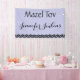Souhaitez votre personne préférée Mazel Tov ou félicitations avec cette bannière customisée. La bannière inclut une belle frontière inférieure décorative. La bannière est grande pour tous les types de célébrations : obtentions du diplôme, mitvah de batte, douche, fiançailles, anniversaire, mariage et plus. Changez la couleur d'arrière - plan, la couleur de police, style de police au style de votre choix.