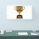 Cette bannière présente les mots "Le plus grand père du monde" affichant une police imprimée en gras d'un an avec des lettres noires et une couronne de gagnants avec le numéro 1 au centre sur un trophée de coupe à plat de couleur dorée sur une base noire dans ce thème de Fête des pères. Cette bannière a un côté d'impression extérieure mesures de sécurité 1.6"x3" fait avec une finition mate élégante et est à la fois fade et déchiré résistant pour Intérieur ou utilisation extérieure idéal pour la publicité, des anniversaires à la remise des diplômes, mariages à anniversaires. Des bords à la menthe et thermiquement soudés pour des bannières d'extérieur finement soignées peuvent être achetés avec des grommets métalliques.