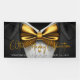 Bannière de fête d'anniversaire en noir et or avec tuxedo noir et cravate en or. Cette bannière de fête d'anniversaire en noir et or est facilement personnalisée pour votre événement en changeant le texte si nécessaire. Cette bannière de soirée tuxedo et d'événement fonctionne bien pour les événements d'entreprise, les retraites, les fêtes de célibataire et tout événement officiel de cravate noire. Ajoutez votre texte, logo, images, etc., pour personnaliser.