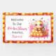Bannière de baby shower d'accueil personnalisée. Baby shower de fille d'abeille miel à l'aquarelle mignonne. Adorable abeille bébé assise sur nid d'abeille. Les couleurs sont principalement roses et jaunes.