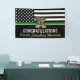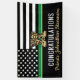This graduation design features a military flag with black and white stripes, and a thin green line stripe as well. The gold army boots sits above the name of the graduating sergeant, captain, soldier, lieutenant or general.