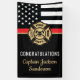 Cette conception comprend un drapeau de pompier avec des rayures noires et blanches, ainsi qu'une fine bande rouge. "Félicitations" et l'insigne d'un pompier se trouve au-dessus du nom du pompier, lieutenant ou chef qui est diplômé ou qui prend sa retraite. Fêtez dans le style !