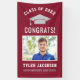 Celebrate your graduate in style with a modern personalized graduation banner sign, featuring their class year with elegant silver colored grad cap, space to display a senior photo, and sporty custom text for the grad's name. Dark maroon red, white, and silver gray colors can be customized to match your party colors.
