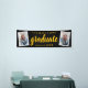 Une façon amusante de montrer votre fierté pour votre diplômé. Utilisez des bannières photo lors de vos événements ou comme décor de jardin. Cette bannière de graduation en gras présente 2 ouvertures photo avec grand type de diplômé au centre et le nom de l'diplômé et l'année de graduation. La couleur Arrière - plan est entièrement personnalisable ainsi que toutes les polices.