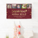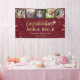 Graduation moderne Custom Name Photo Collage Bannière avec confetti en or imprimé festif Illustrations lisant Félicitations à votre diplômée. Personnalisez avec 5 de vos photos préférées, votre nom, votre école et votre classe de ainsi que l'option de changer l'arrière - plan en une autre couleur dans l'outil de conception sous "customiser plus loin". C'est la version rouge bordeaux.