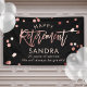 Modern Happy Retirement Nom personnalisé Bannière avec un rose imprimé festif en or confetti Illustrations. Personnalisez avec votre nom et 1 ou 2 autres lignes de texte personnalisé ainsi que l'option de changer l'arrière - plan en une autre couleur dans l'outil de conception sous "customiser plus loin". Voici l'or rose en version noire.