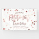 Modern Happy Retirement Nom personnalisé Bannière avec un rose imprimé festif en or confetti Illustrations. Personnalisez avec votre nom et 1 ou 2 autres lignes de texte personnalisé ainsi que l'option de changer l'arrière - plan en une autre couleur dans l'outil de conception sous "customiser plus loin". C'est l'or rose en version blanche.