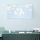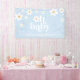 Mon bébé ! Bannière de baby shower marguerite d'inspiration rétro avec marguerites de style 70's et polices et couleurs boho. bleu pâle.