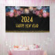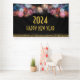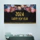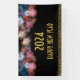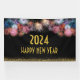 Feu d'artifice, paillettes dorées et lettres dorées «Bonne Année + année en cours» bannière éclairant le fond noir. Cette bannière sera parfaite dans la plupart des endroits et donnera le ton pour une grande célébration. Choisissez entre différentes tailles et formes et trouvez ce qui convient à votre lieu.