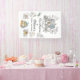 A vintage inspired baby shower welcome banner, featuring a welcoming cottage and charming details like woodland mushrooms, a teacup on a stool, books tied with ribbon, a butterfly, and a curious snail. Warm and inviting for gender neutral themes, garden style gatherings, or an at home celebration. Edit the wording to match your day, and choose from a variety of fonts.