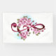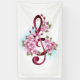 Pink treble clef with delicate, detailed pink Japanese cherry blossoms against white background painted over with light blue paint Blooming pink sakura.