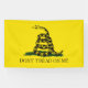 Ce dessin présente le Drapeau de Gadsden, un drapeau américain historique qui contient l'illustration d'un serpent à sonnette en bois qui s'élève de l'herbe dans une posture agressive ; il y a un arrière - plan jaune vif qui recouvre le drapeau. Le texte dit "Ne marche pas sur moi" dans les lettres majuscules. Il porte le nom du général et homme politique américain Christopher Gadsden, actif au XVIIIe siècle. Il a conçu le drapeau en 1776, pendant la Révolution américaine, et il a été adopté pour l'utilisation par les Marines continentales, qui était la principale force d'infanterie navale des colonies américaines, devenant par la suite les États-Unis d'Amérique. Il est souvent utilisé dans les temps modernes comme symbole patriotique, montrant le respect pour l'histoire américaine et la lutte pour obtenir l'indépendance de l'Empire britannique. Il est parfois aussi piloté par des partisans de mouvements politiques libertaires, car son message peut être considéré comme un express de l'importance de la liberté individuelle contre les gouvernements oppressifs.