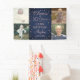 Célébrez un joyeux anniversaire d'étape avec une bannière de fête bleu marine et rose personnalisée 4 photo. (CONSEIL EN MATIÈRE DE PLACEMENT D'IMAGE : Une façon simple de centrer une photo exactement comment vous voulez est de la rogner avant de la télécharger sur le site Zazzle.) Design comprend quatre images de votre choix, la calligraphie de script moderne personnalisable "Cheers to 30 Years" et des points de confetti en faux feuille d'or rose sur un arrière - plan bleu marine. Veuillez noter que le texte est imprimé en couleur et non en papier métallique. Le message de typographie moderne est simple à personnaliser à tout âge ou à une autre occasion, comme un anniversaire ou une retraite. Cette signature de fête est une façon élégante de partager des photos de votre choix tout en ajoutant une touche de finition personnalisée à une célébration spéciale de la 30e (ou autre année) pour elle. S'il n'y a pas de texte non désiré, il suffit de le supprimer.