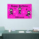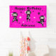 Créez une fête d'anniversaire mémorable et amusante pour le mignon enfant ninja dans votre vie. Cette bannière de fête d'anniversaire facilement personnalisable fait partie d'un ensemble d'accessoires de fête d'anniversaire assortis. Vous pouvez organiser la meilleure fête d'anniversaire à thème ninja pour votre petit amateur d'arts martiaux. Ajoutez simplement vos propres détails pour customiser, et n'oubliez pas les assiettes de fête, les tasses, les serviettes et tout le nécessaire. Ce design présente de mignons petits ninjas en noir et blanc avec un arrière - plan rose chaud.