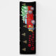Cette bannière de Noël est montrée dans le style extérieur avec des grommets. Choisissez à l'intérieur ou à l'extérieur, avec ou sans grommets. Montré en arrière - plan noir avec des images de l'ancien camion de campagne rouge portant un arbre de Noël dans le dos ainsi que des arbres de Noël multicolores dans l'arrière - plan et rouge Joyeux voeux de Noël. Multicolore. Personnaliser ou achat tel que conçu