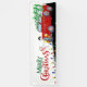 Cette bannière de Noël est montrée dans le style extérieur avec des grommets. Choisissez à l'intérieur ou à l'extérieur, avec ou sans grommets. Montré en arrière - plan blanc et noir avec des images de l'ancien camion de campagne rouge portant un arbre de Noël dans le dos, avec des lumières de Noël multicolores et des salutations de Noël rouge et vert Joyeux avec des bonhommes de neige. Multicolore. Personnaliser ou achat tel que conçu