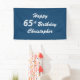 Quelle bannière unique pour une joyeuse fête du 65e anniversaire. L'arrière - plan est un motif bleu plaid. Vous pouvez personnaliser trois lignes de texte blanc de votre choix - adapté à n'importe quel nom, n'importe quel âge. Sélectionnez Matériau intérieur ou extérieur. Tous droits réservés © 2016 Alan & Marcia Socolik.