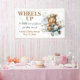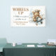 Créez une ambiance de célébration dans les airs avec cette charmante bannière de baby shower « Wheels Up » ! Avec un ours en peluche tout mignon dans un avion ancien volant à travers des nuages à l'aquarelle, cette bannière personnalisée ajoute la touche parfaite à votre shower sur le thème de l'aviation. Avec un titre gras et un texte cursif doux en dessous, elle annonce votre petit copilote avec style. Idéal pour décorer les entrées, les tables de desserts ou les toiles de fond pour photos. Personnalisez avec le nom de l'invité d'honneur et la date pour un souvenir que les invités adoreront.