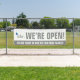 Banderoles Nous sommes ouverts logo et message gris entrepris