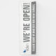 Aidez à encourager les clients à revenir dans votre entreprise avec cette bannière d'enseigne commerciale pour informer les clients que vous êtes ouvert. Bannière simple et grasse gris moyen et blanc. Lit Nous sommes ouverts ! La couleur de fond peut être modifiée pour s'adapter aux couleurs de votre entreprise actuellement gris et blanc. Idéal pour générer du trafic piétonnier vers votre entreprise ou service. Personnalisez avec votre propre logo de forme carrée et les détails de votre message client sur la bande grise. Conçu par www.mylittleeden.com