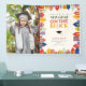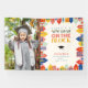 "New Grad On The Block", thème de remise des diplômes pour enfants de l'école primaire / maternelle / maternelle avec illustration des maisons de quartier colorées et des bâtiments à droite autour du texte avec votre photo personnalisée à gauche.
