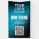 Now Hiring Banner with QR Code: Capture attention and streamline your hiring process with this eye-catching banner. Featuring the distinctive teal grunge gradient background, this banner prominently displays your company's logo alongside a QR code that links directly to your online job listings. Ideal for job fairs, corporate events, or placement outside your business premises, this banner effectively communicates your hiring needs while reinforcing your brand identity.