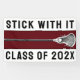 Banderole de remise de diplômes de l'équipe de crosse créative avec bâton de laxisme et citation de motivation sur arrière - plan marron. Modifier le texte pour ajouter une année.