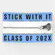 Bannière de crosse avec citation motivante et bâton de laxisme sur arrière - plan bleu clair. Pour customiser modifier du texte pour ajouter une année.