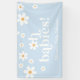 Oh Babies ! Banderole de baby shower jumeau de marguerite d'inspiration rétro avec marguerites de style 70 et polices et couleurs boho. bleu pâle.