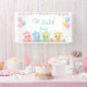 Create a magical and memorable baby shower with this charming woodland banner featuring adorable bunnies, soft pastel colors, and playful celebration details. Designed with balloons, streamers, hearts, and sweet forest touches, it brings a joyful and cozy atmosphere to your special day.