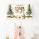 Celebrate your little adventurer with this One Happy Camper vinyl banner. Featuring a charming woodland camping theme with trees, tent, campfire, and forest animals, this design is perfect for a boy’s 1st birthday party. Fully customizable with your child’s name, party details, and wording. Ideal for rustic, outdoor, or camping-themed birthday celebrations.