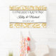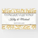Une bannière élégante de mariage or et noir conçue avec une garniture dorée stylée sur fond blanc, avec le texte : Félicitations !, Les prénoms des mariés et la date du mariage. Pour personnaliser, il suffit d'insérer votre texte dans notre modèle facile, en remplaçant le texte d'exemple. N'oubliez pas de consulter l'ensemble de la Collection de Mariage Élégante Or et Noir.
