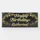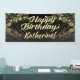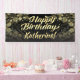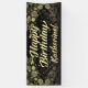 Le joli or et la bannière personnalisée de fête noire de fête d'anniversaire murent la décoration. Coutume étonnamment belle de bannière imprimée avec le nom de l'invite de honneur des hommes ou des femmes ! La poussière de noir et d'or, bokeh et rayons de la lumière féeriques pour célébrer l'anniversaire spécial !