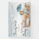 C'est un garçon et nous pouvons "attendre prématurément" Texte du script "Baby Sprinkle" Design de bienvenue avec un mignon petit ours habillé d'un imperméable bleu avec un parapluie bleu. Il est assis à côté d'une flaque d'eau jouant avec ses blocs de bois au milieu des roseaux, des herbes et des champignons. Conception composite par Holiday Hearts Designs.