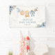 Accueillez vos invités avec cette bannière Ourson en peluche bleu Cutie Pie pour Baby Shower garçon. Avec un ours en peluche aquarelle tenant une tarte, des citrouilles bleues, des vêtements de bébé garçon sur un fil à linge, des tartes confortables et des accents floraux doux, ce design rustique boho est parfait pour une baby shower d'automne ou de Thanksgiving. Une façon charmante de saluer vos proches tout en célébrant votre petit ange.