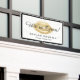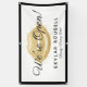 Faites la promotion de votre salon de beauté, des services de maquillage et plus encore avec notre élégant et luxueux bandeau d'affaires ouvert. Le design présente d'élégantes lèvres de poussière de parties scintillant en faux or le long du sommet avec "We're Open!" affiché dans une élégante typographie de script. Customisez avec votre nom d'entreprise. Une simple bordure noire encadre la bannière. Oeuvre de Moodthology.