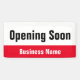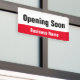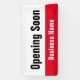 Cette bannière extérieure est rouge vif, noire et blanche. Vous pouvez modifier le texte pour répondre à vos besoins. Vous pouvez ajouter votre message personnalisé (indiqué : Ouverture bientôt du nom commercial). Le dessus est blanc avec du texte noir. Le bas est rouge vif avec du texte blanc pour votre numéro de téléphone ou le texte personnalisé. Tout le texte peut être modifié ou supprimé.
