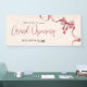 Cette bannière de bienvenue pour l'ouverture officielle de l'entreprise présente un nœud rouge aquarelle moderne et un ruban sur un fond de couleur crème claire.