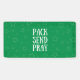 "Paquet. Envoyer. Priez." Cette banderole rappelle aux téléspectateurs d'emballer, d'envoyer et de prier des cadeaux de boîte à chaussures pour l'opération Enfant de Noël*. Idéal pour la promotion de votre campagne de boîte à chaussures. *Ce produit n'est pas endossé ou affilié à l'opération Enfant de Noël ou sac à main de Samaritain, mais a été créé pour soutenir le travail de leurs bénévoles pour rendre leur mission possible.