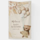 Banderole élégante de baby shower bohème avec un arrière - plan brun clair, un ours vintage d'aquarelle, ballons, boho rustique pampas herbe & florales, plus un modèle texte moderne qui est facile à personnaliser.