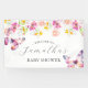 Ces bannières de baby shower personnalisées présentent des papillons et des fleurs dans les tons rose, pêche, orange et lavande. Utilisez les champs modèle pour do-it-yourself votre texte personnalisé. Un choix adorable pour le thème de la douche aux papillons et aux berceuses. Pour voir d'autres idées et décorations de baby showers de filles comme celle-ci visitez www.zazzle.com/dotellabelle Art floral unique de Victoria Grigaliunas de Do Tell A Belle.