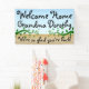 Bienvenue chez vous à un ami ou un membre de la famille tant attendu, avec ce panneau personnalisé, avec un arrière - plan bleu et bronzé, des vignes à curling et une police de caractères fantaisie.