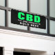 Faites la promotion et la publicité de votre entreprise avec ce bannière publicitaire pour la vente d'huile de CBD et de produits à l'extérieur. Il est conçu avec un fond noir et de grandes lettres vertes et blanches en gras. Le texte indique "huile de CBD et produits vendus ici".