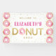 Préparez la scène pour l'anniversaire de votre petit avec cette bannière amusante et festive de la boutique de donuts ! Avec du texte rose et or, des donuts glacés à l'aquarelle et des pépites dispersées, c'est parfait pour une célébration "Sweet One" ou une fête sur le thème de la boulangerie. Personnalisez avec le nom de votre enfant pour un fond personnalisé et digne d'Instagram.
