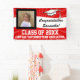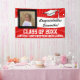 Couleurs vives rouge et blanc du lycée ou de l'université. Grand panneau géant ou bannière intérieure/extérieure, Félicitations au diplômé de la classe de (votre année). Customisez cette bannière personnalisée de jardin avec la photo, le nom, l'année et l'école de votre diplômé ou tout autre texte personnalisé. Bannière de la fête de remise de diplômes personnalisée en extérieur ou en intérieur avec l'année, le nom, le lycée de votre diplômé. Une façon spectaculaire de féliciter le diplômé et d'accueillir la famille et les invités à votre fête de remise de diplômes.